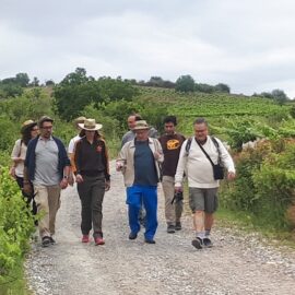 Es así, al menos, en un tramo de enorme belleza que atraviesa los viñedos del Bierzo y recorre algunas de las localidades de sonoros nombres (Valtuille de Abajo, Valtuille de Arriba, San Román de Bembibre…) que han dado fama a los vinos de esa denominación de origen. Combinar ese baño de naturaleza con las explicaciones técnicas de Rafael Somonte, enólogo de Dominio de Tares, permite entender los criterios seguidos en el pasado para plantar esas vides y para elegir las variedades. Entre ellas godello y mencía pero también jerez (palomino) y alicante (garnacha tintorera o alicante bouschet).