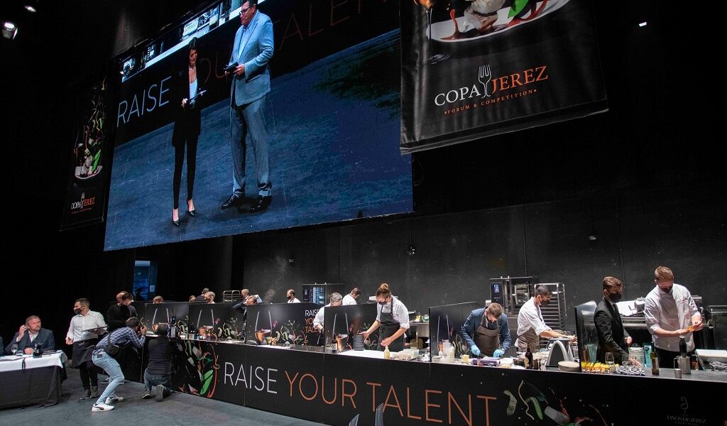 Los vencedores ofrecieron como primer plato “Caballa, dashi, chorizo, alcachofa, pak choi y aceite de levístico” con fino Viña Corrales Pago Balbaina -embotellado en 2020- de Bodegas San Francisco. Como segundo plato, un “Cordero, avellana, puré de apionabo y sésamo, flor de calabacín rellena de queso manchego y shiitake y patata confitada al romero con un oloroso de Bodegas Gutierrez Colosía. El postre, “Pera en almíbar de tabaco y especias, cremoso de limón y helado de queso de cabra” con Medium Old Harvest de Bodegas Ximénez-Spinola.