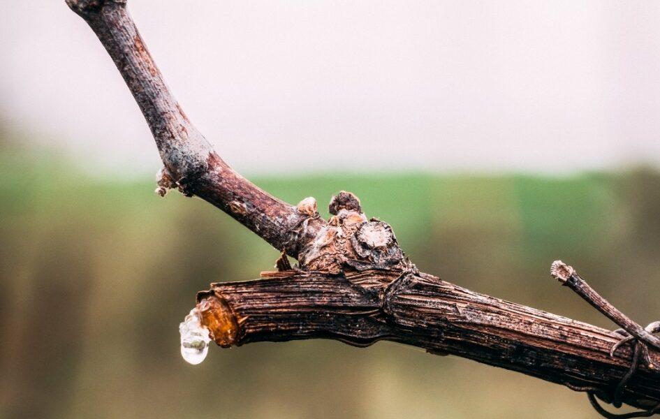 No se espanta, de momento, por la sequía. Un fenómeno frecuente en estas tierras áridas que quizá anuncie pronto su final. O al menos, esa es la esperanza que mantiene. La vid llora porque anuncia la primavera y la vida, porque la sabia surge a través de sus heridas y porque todavía se aprecian, limpios y a la vista, los cortes que unas enormes y extrañas tijeras de poda dejaron en sus brazos. Una dolorosa manera de dar forma a la planta, de alargar su vida, de evitar enfermedades y de afirmar una nueva cosecha con racimos de calidad.